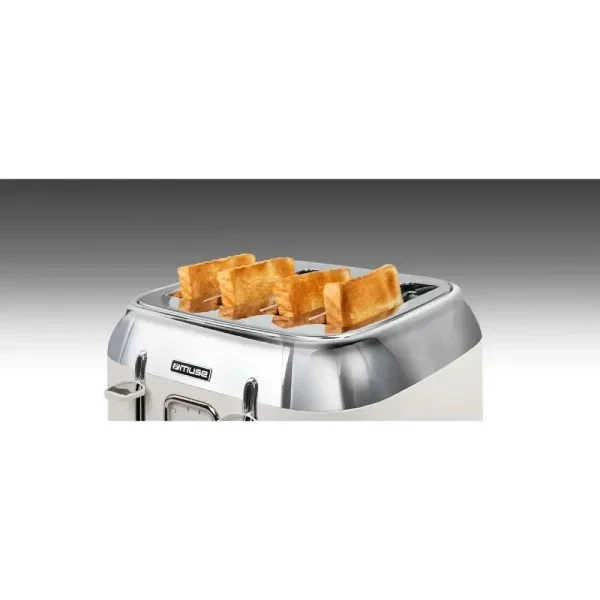 Виробник: Muse. Керування: механічне. Матеріал корпусу: нержавіюча сталь. Колір: айворі. Тип: тостер. Кількість відділень/шматочків або сендвічів: 4/4. Стан товару: Новий. Особливості: знімний піддон для збору крихт. Сфера використання: для дому. Габарити, см: 30 x 29.6 x 19.5. Функції: автовідключення. Функції: розморожування. Функції: автоцентрування. Функції: підігрів. Кількість ступенів обсмажування: 6. Потужність, Вт: 1800.